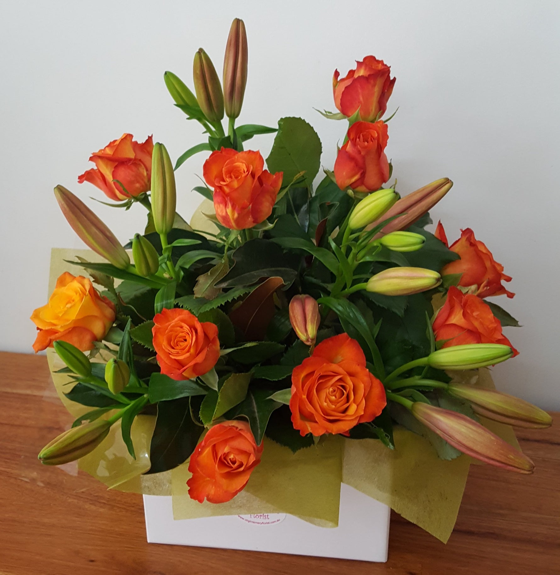 Unit price perMake your loved ones' day with Cherish - a stunning box arrangement of roses and non-perfumed lillies . Show them how much you care with this beautiful and thoughtful gift.