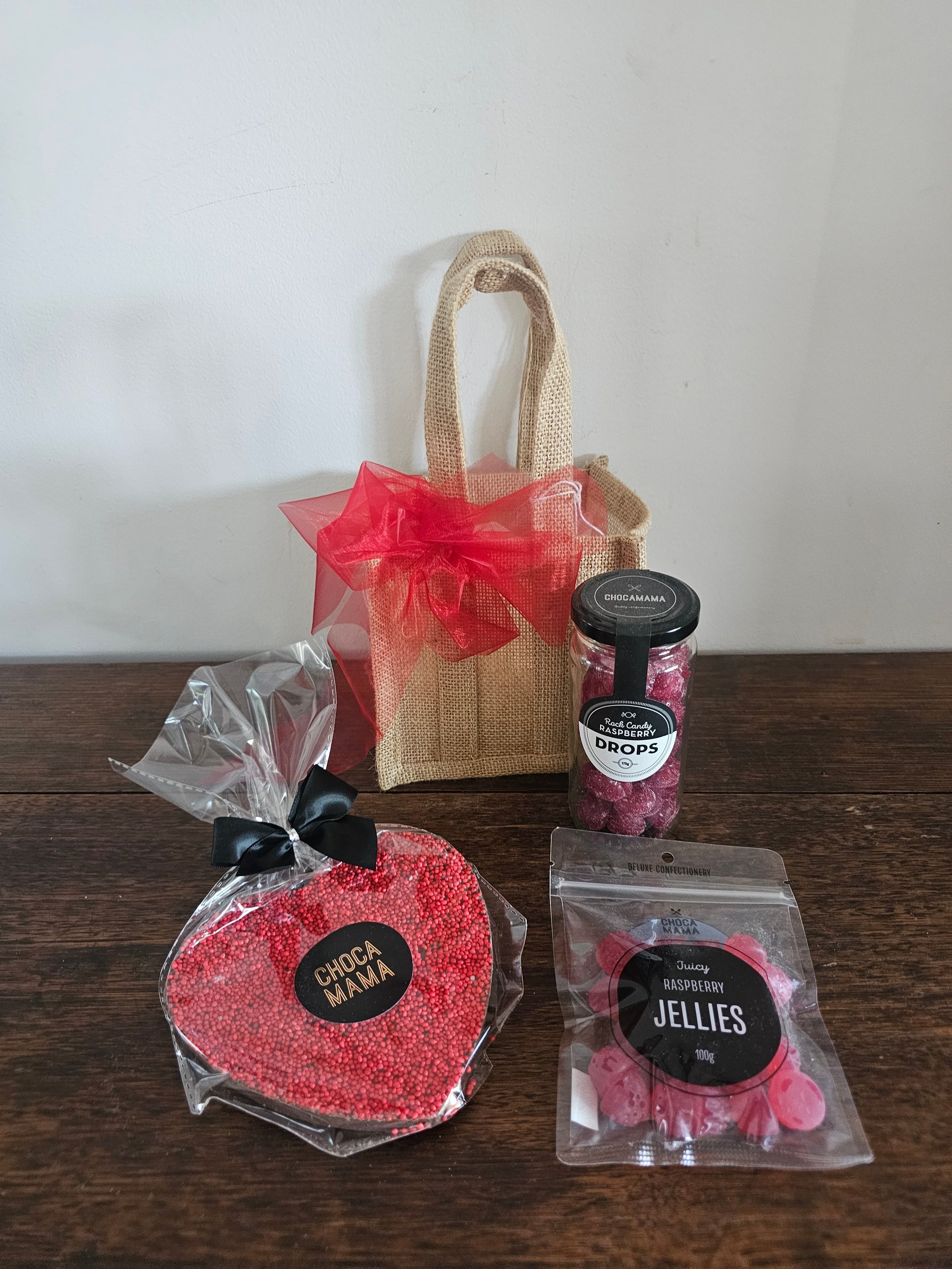 Discover pure indulgence with our luxurious Raspberries gift selection. Choose from two stunning options featuring raspberry jellies, chocolate-covered raspberries, a decadent chocolate freckle heart, and playful lollies—all nestled in an elegant gift bag. Whether you're celebrating love, friendship, or simply treating yourself, this curated collection combines fruity freshness with rich chocolate decadence. A truly memorable gift that speaks to refined taste and thoughtful generosity.
