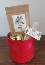 # Option 1: Rose & Santal Perfume Gift Set Indulge in luxury with this thoughtfully curated red gift box featuring rose and santal perfume, mimosa botanical bath soak, rose tea light beeswax candle, votive holder, and red heart chocolates. Perfect for gifting or personal indulgence, this collection combines sophisticated fragrance with spa-like relaxation and sweet treats. Each element is selected to create a complete sensory experience that transforms any occasion into something special. --- # Option 2: Rose in Bloom Parfum Gift Set Celebrate elegance with this stunning red presentation box showcasing Rose in Bloom parfum alongside mimosa botanical bath soak, rose tea light beeswax candle, votive holder, and red heart chocolates. A harmonious blend of premium fragrance and pampering essentials, this curated collection offers the perfect escape from everyday life. Ideal for those who appreciate refined beauty and meaningful gifts that truly impress.