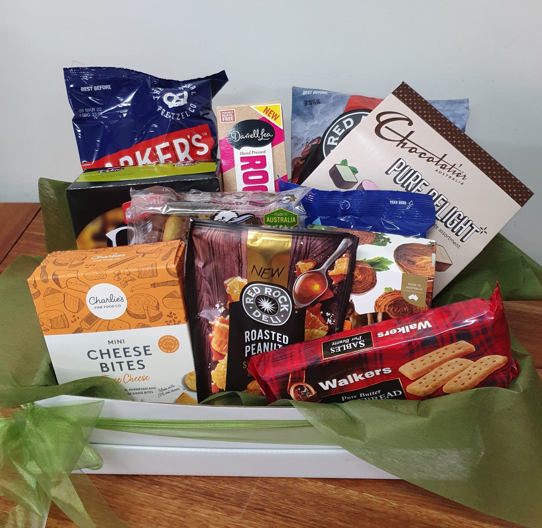 Unit price perIn this hamper we have a little something for everyone. It's a little bit sweet & a little bit savory & we can also add a bottle or two of wine to make it even more enjoyable. If you would like a bottle of wine added then please select that from our chocolate & wine section. Items & packaging may vary from image shown. Image is of the Standard & Premium
